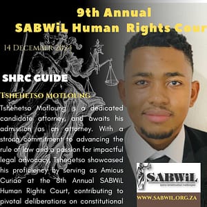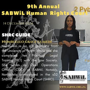 SABWiL Human Rights Court (SHRC) is our annual human rights training court that commemorates the signing of the South African Constitution on 10 December 1996 by Nelson Mandela in Sharpeville, Soweto. In this 9th SHRC we deep dive into section 12 of the Constitution, Act No.108 of 1996, in light of the recent Judicial Inspectorate for Correctional Services reports and the August 2024 Crime Statistics .